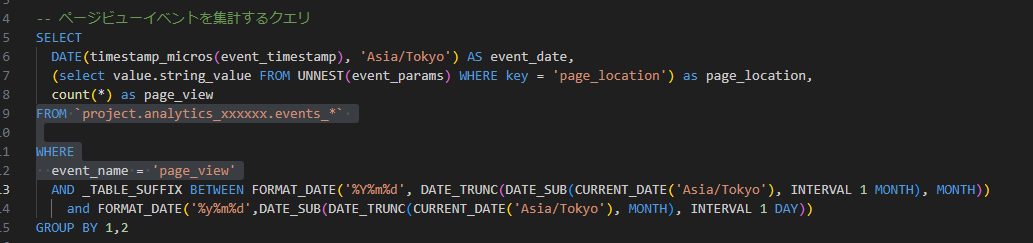 GA4エクスポートデータは計測しているWEBサイトの規模間にもよりますが1か月分で数百GBに及ぶこともあります。ROWデータに対するスキャン量を削減することが、クエリ費用削減の第一歩となります。