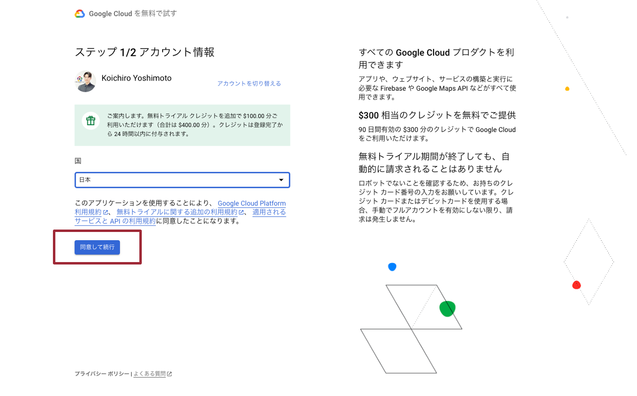 お支払い情報の入力が完了すると、Google Cloudへの登録は完了です。