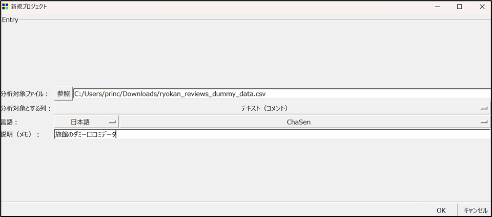 プロジェクトの新規作成を選んだあとは、以下の手順でテキストデータを読み込みます。