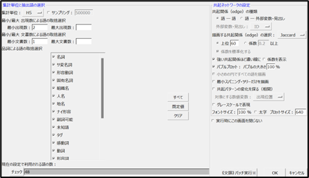 「共起ネットワークの設定」画面で、以下の設定を推奨