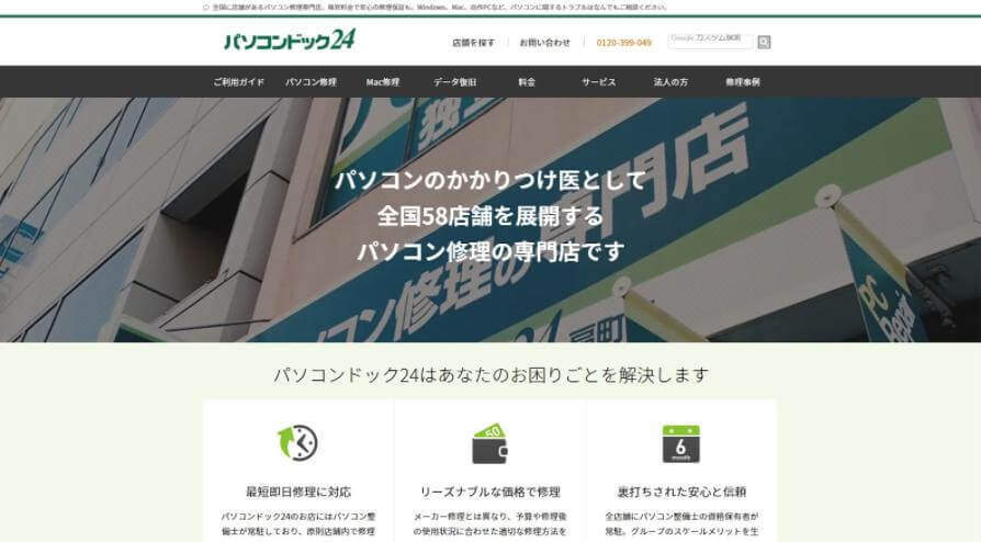 パソコンドック24 様は一般的なパソコンの修理もさることながら、Mac(Apple社製のPC)修理において強みを持たれている上、全国に60店舗近くの店舗を持たれている、業界屈指のパソコン修理専業の事業者様です。