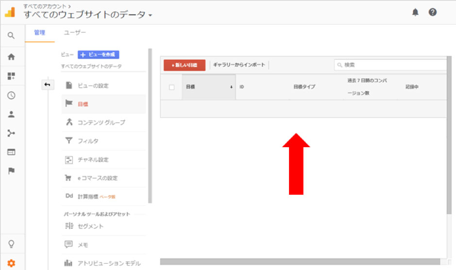 Googleアナリティクスの管理画面⇒ビュー⇒目標