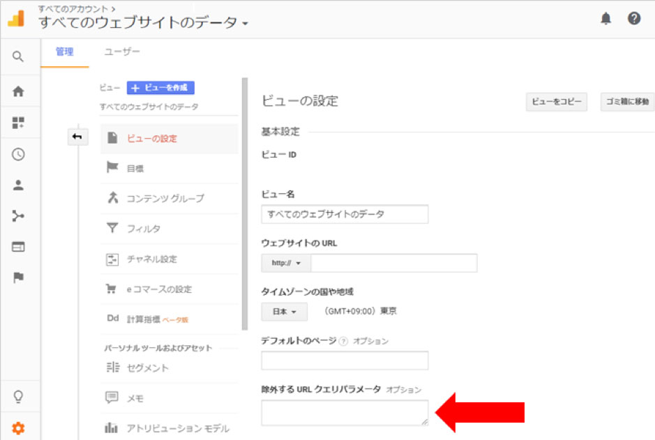 Googleアナリティクスの管理画面⇒ビュー⇒ビューの設定