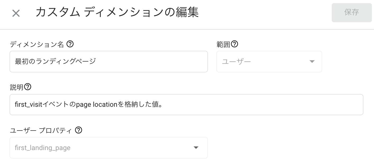 ここに「最初のユーザーのランディングページ」があればやりたいことはすぐそこなのですが、残念ながらそのようなディメンションはありません。
