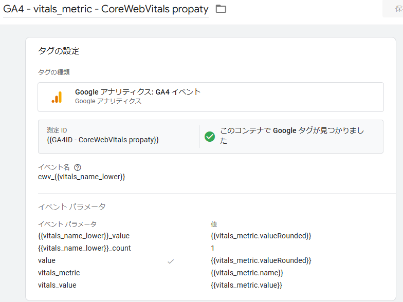 • イベント名には計測された指標名(例:cwv_lcp)を使用