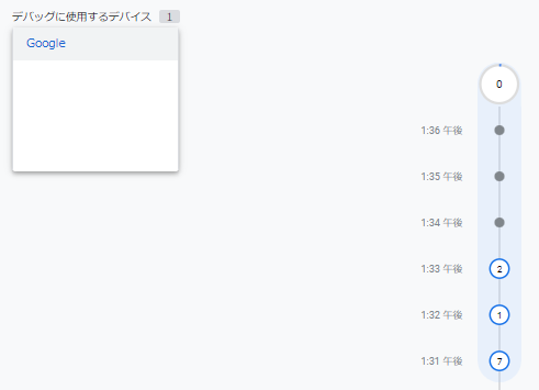 左上にはデバッグに使用するデバイスのプルダウンが表示されています。複数のデバイスでデバッグを行っている場合、プルダウンから選択することで切り替えることができます。