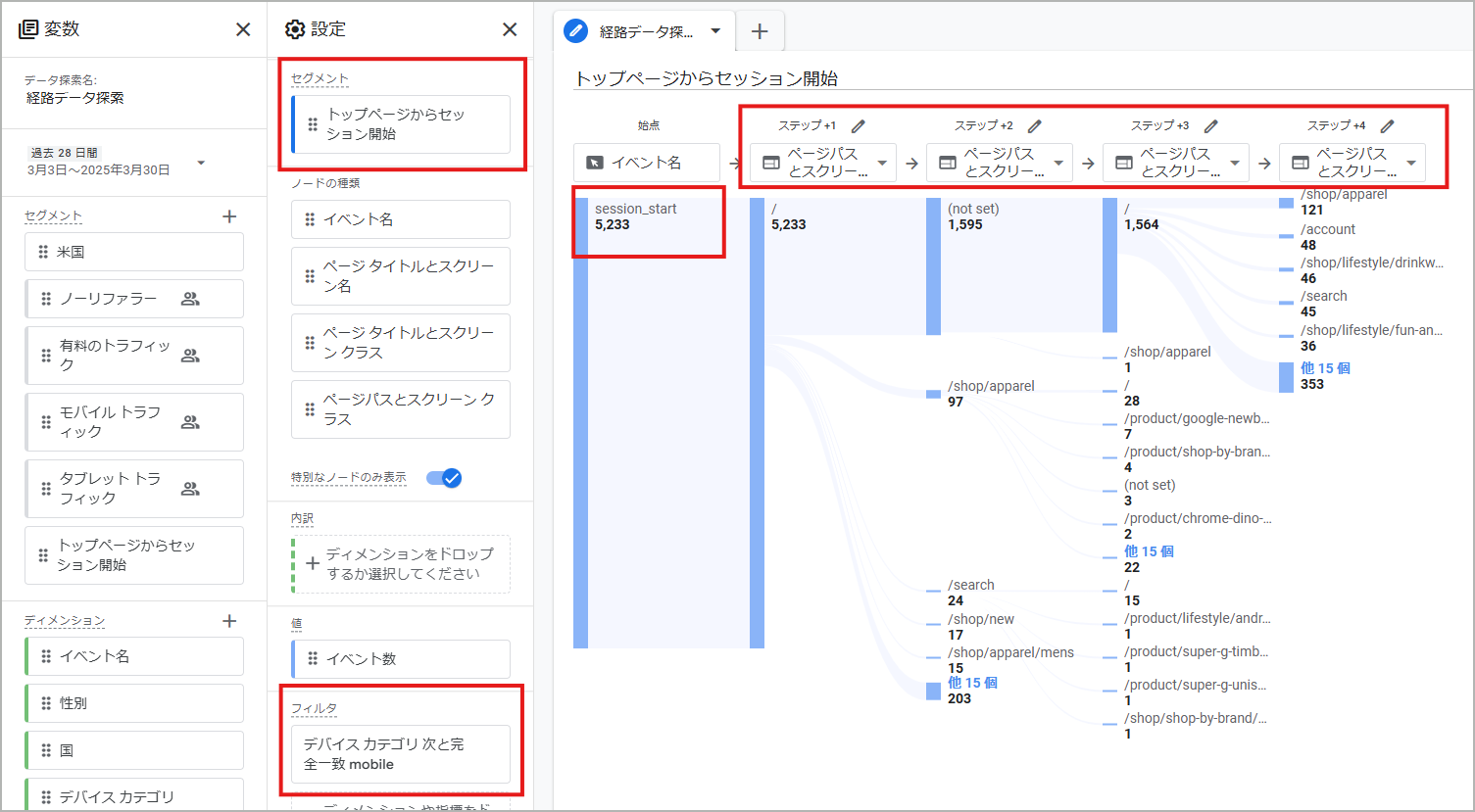 経路データ探索は、サイト全体の主な導線を把握し改善するのに役立ちます。