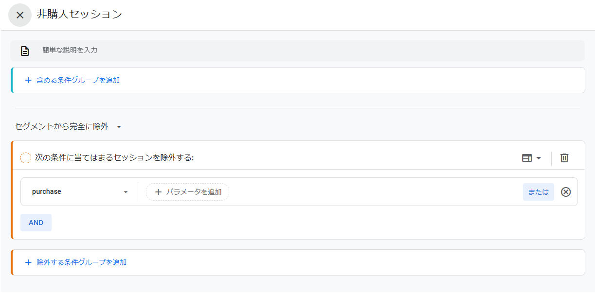 - セッションセグメントで「CVが発生したセッション」と「CVが発生しなかったセッション」の2パターンを作成