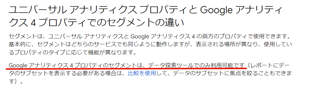 さて、そんな背景を持つ(と筆者は考える)GA4では、探索配下でのみ「セグメント」が作成できます。
