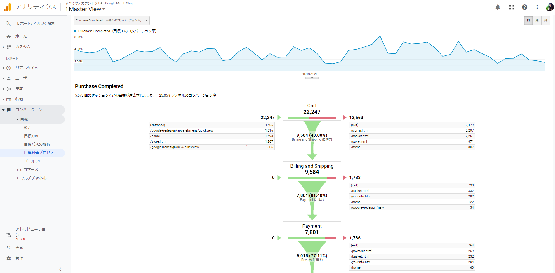 UAの時にあった下図の [目標到達プロセス] レポートは、標準レポートから削除されました。