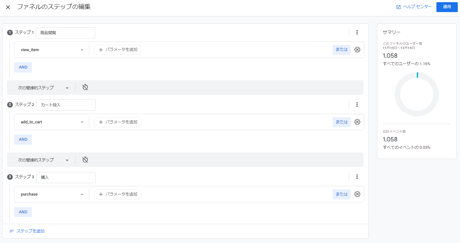 UAの時はURLベースでしか設定できませんでしたが、GA4ではイベントベースであったり特定の行動をファネルの中に組み込むことができるようになりました。
