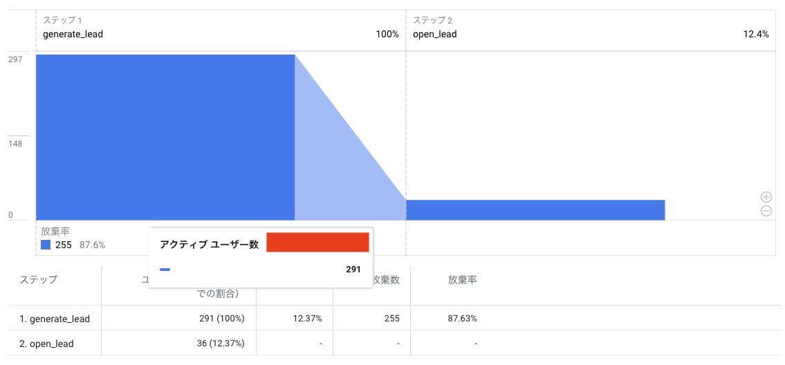 下記は、その時のレポート例です。「Webサイト上の問合せ」→「実際の有益な問合せ」のファネルを見ることができるようになっています。
