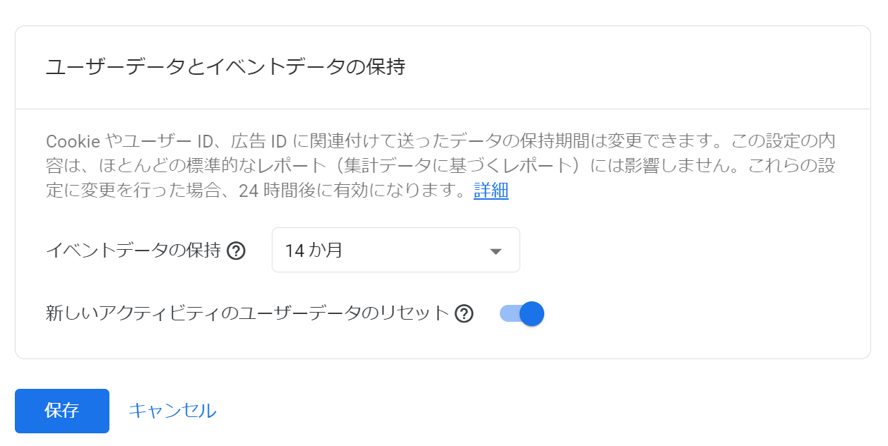 それより古いデータはGA4のブラウザUIからはアクセスできません。したがって過去データを参照したい場合、もっとも長い時間さかのぼっても14ヶ月前まで。ということになります。