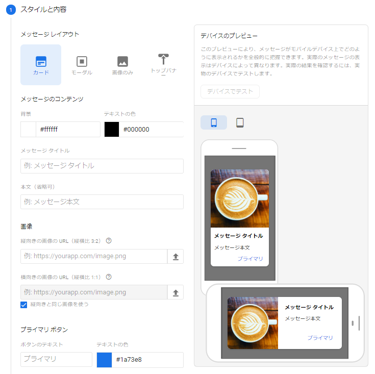 In-App Messagingはアプリ内でメッセージを配信する機能です。メッセージでは、画像だけを配信したり、リンクを設定したCTAを設けることも可能なため、アプリ内行動を活性化させる際におすすめです。