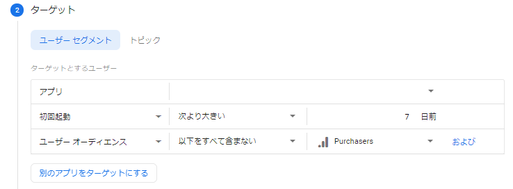 全ユーザーまたは特定の条件に一致するユーザーにのみ表示させることが可能です。一部のユーザーにのみ表示させたい場合には、バージョンや言語、国でのセグメントの他、「Firebase向けGoogle Analyticsのオーディエンスとは?特徴や作成方法をご紹介」でご紹介した特定のオーディエンスに表示させる、等が可能です。