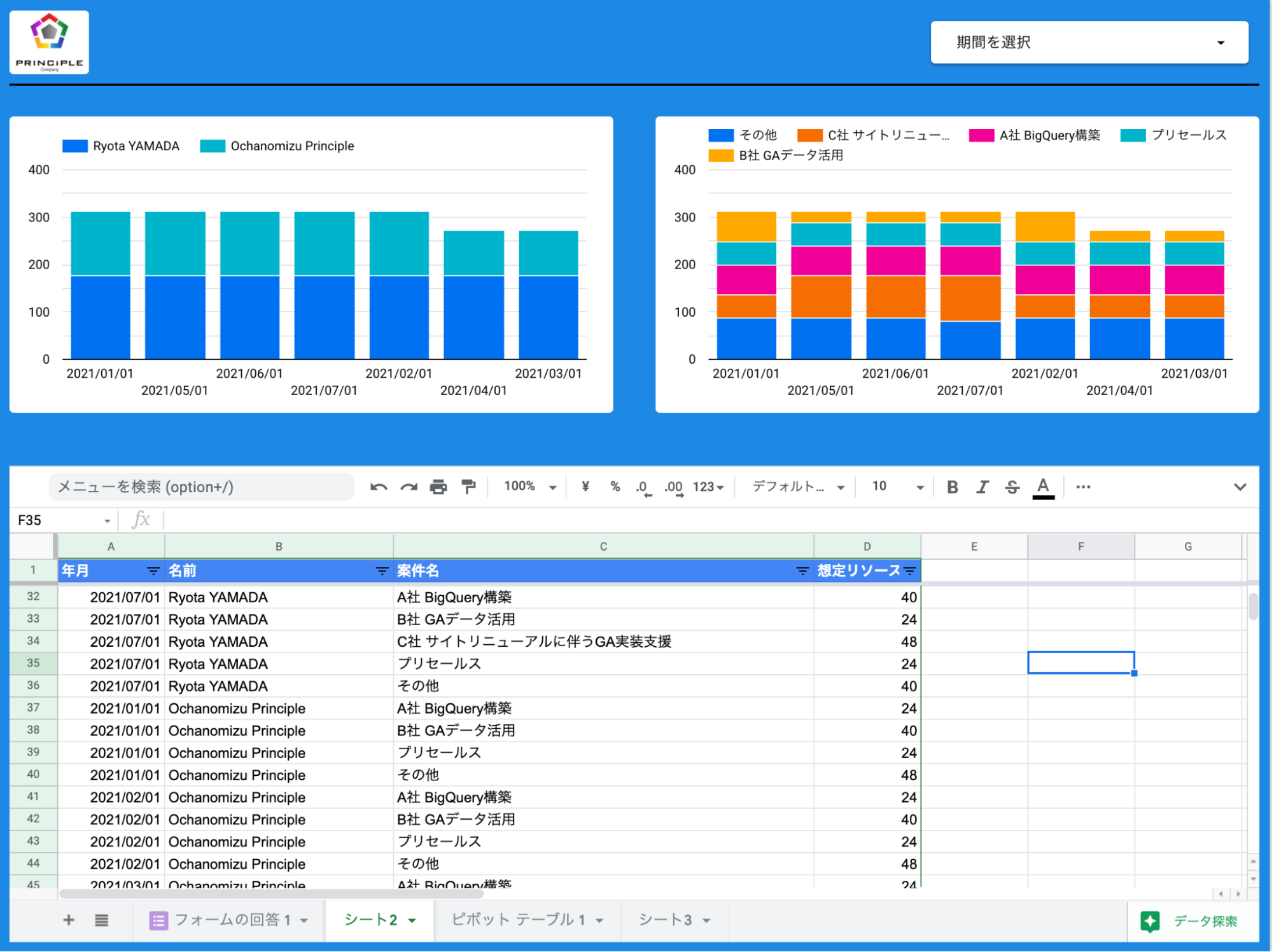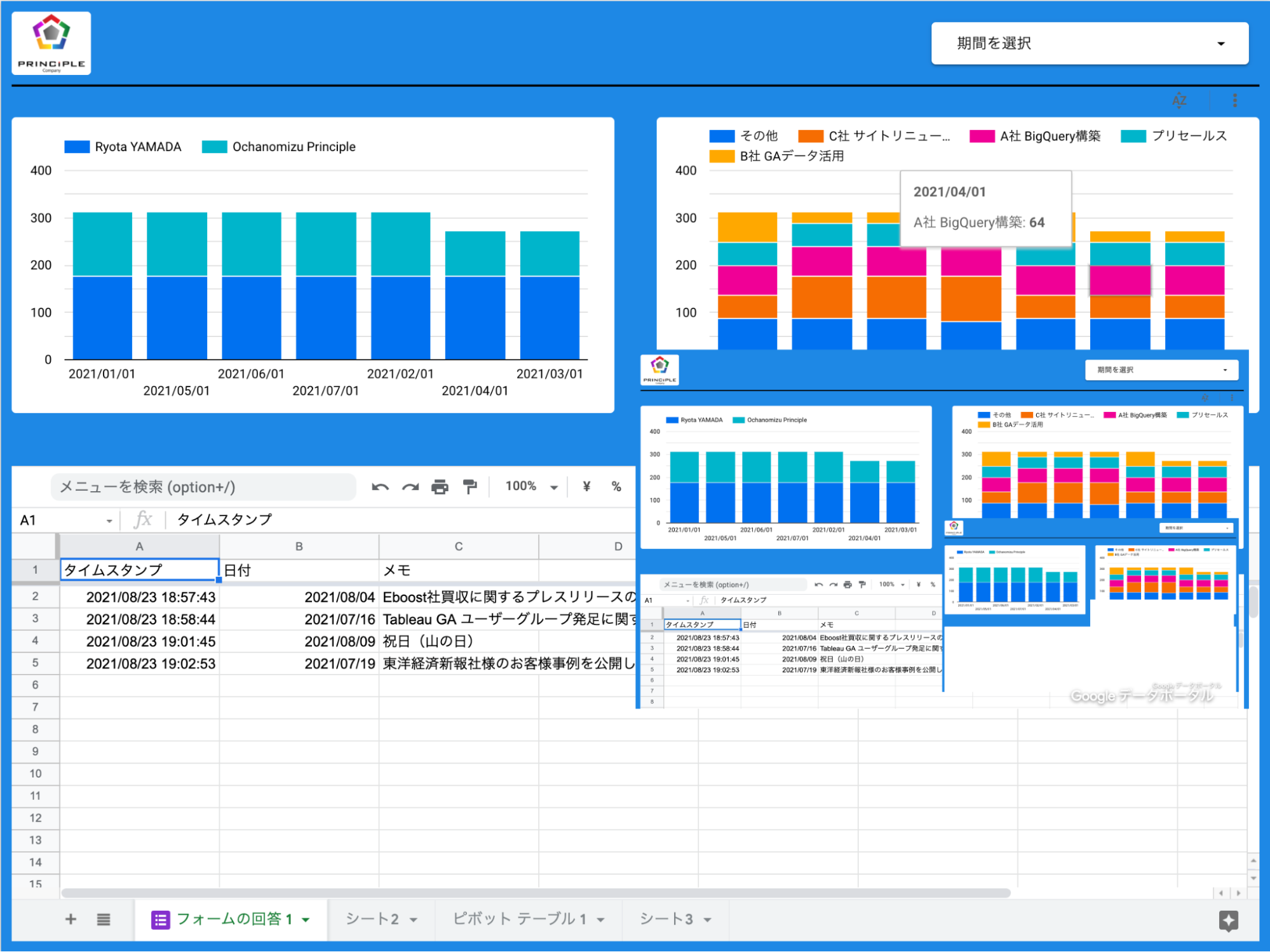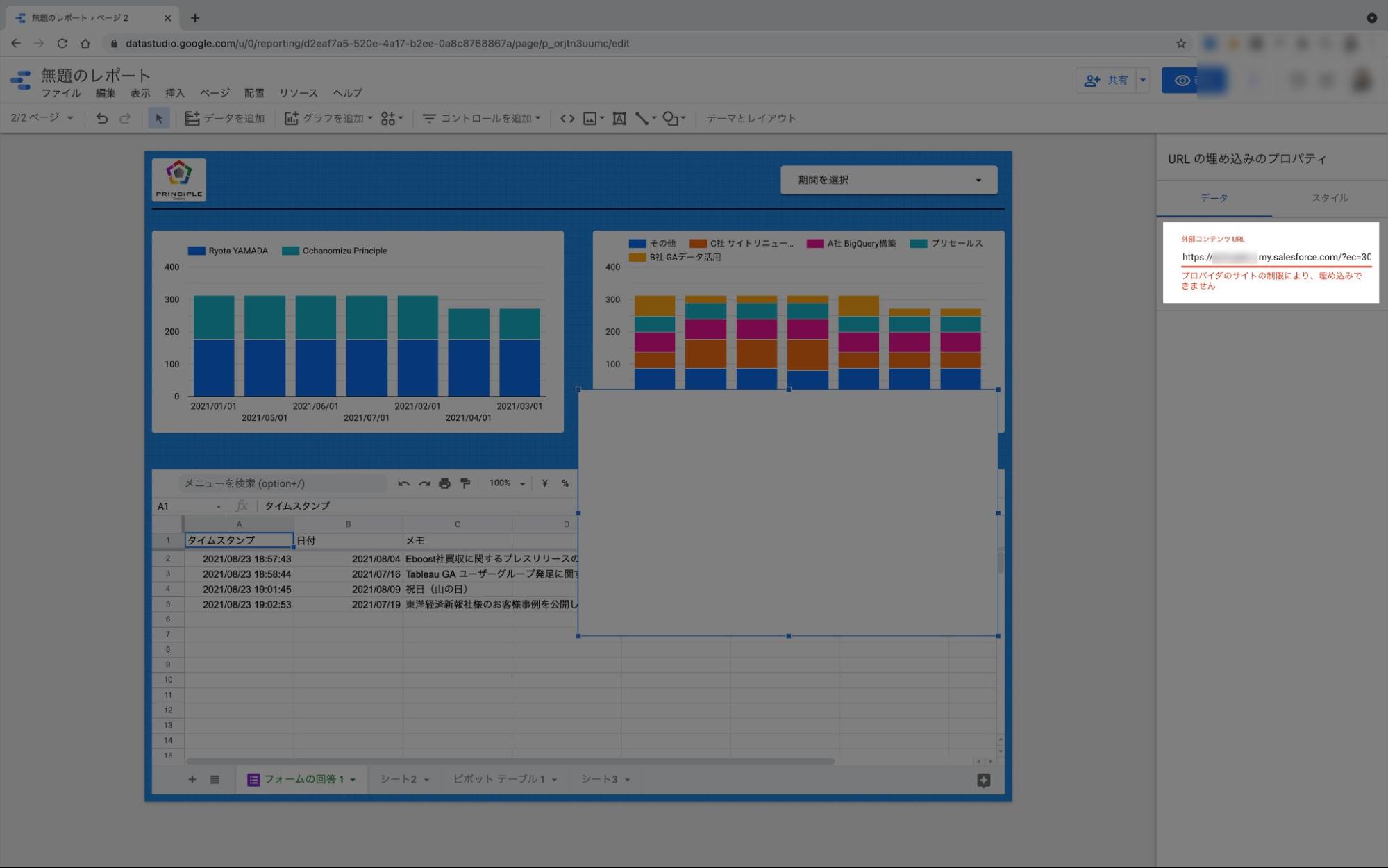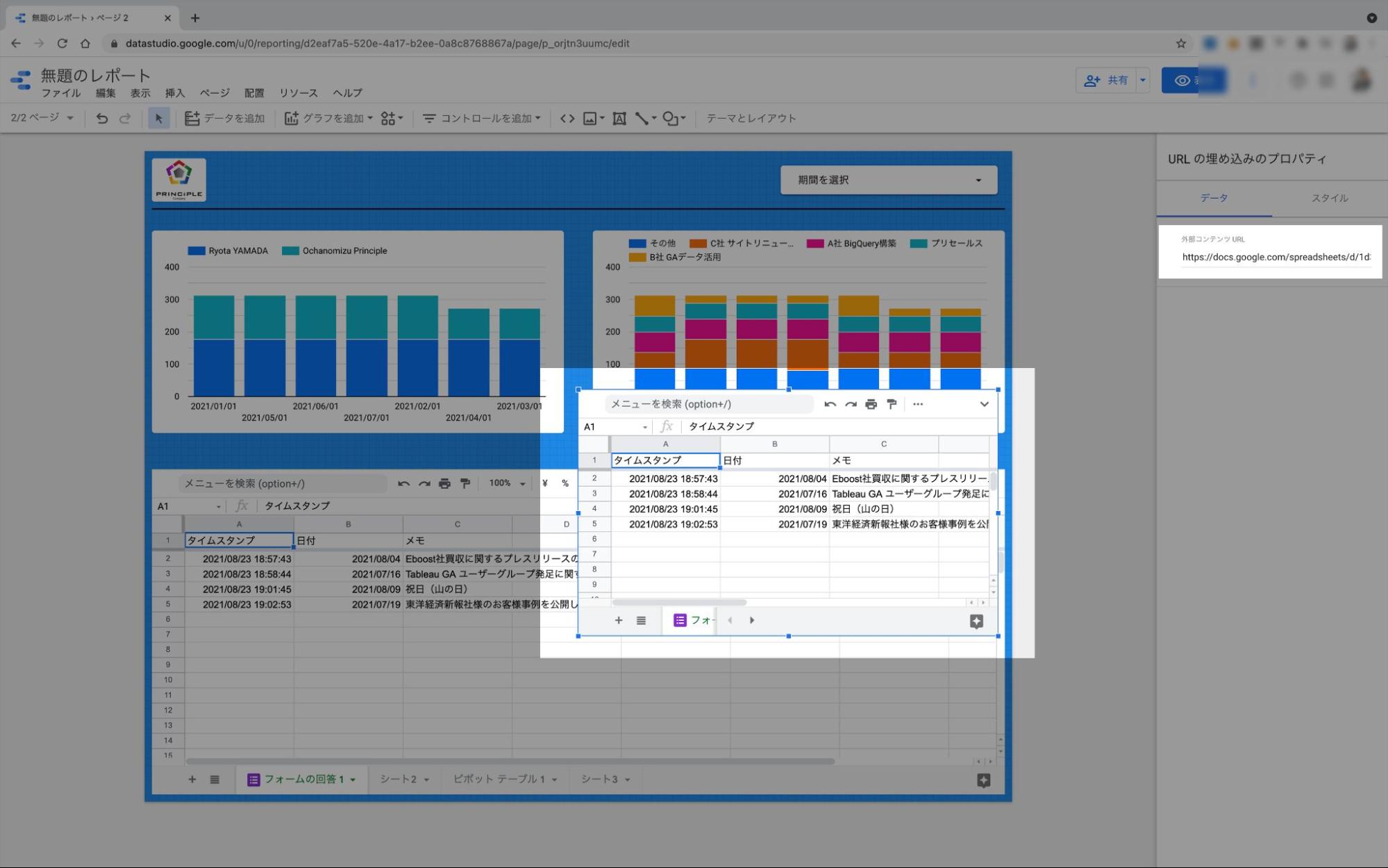 この方法では残念ながら、スプレッドシートで入力した内容がリアルタイムでグラフに反映されなかったり、ダッシュボードのフィルタとスプレッドシートのフィルタがそれぞれ独立に動作してしまう、などの痒い点に届かない部分はあります。