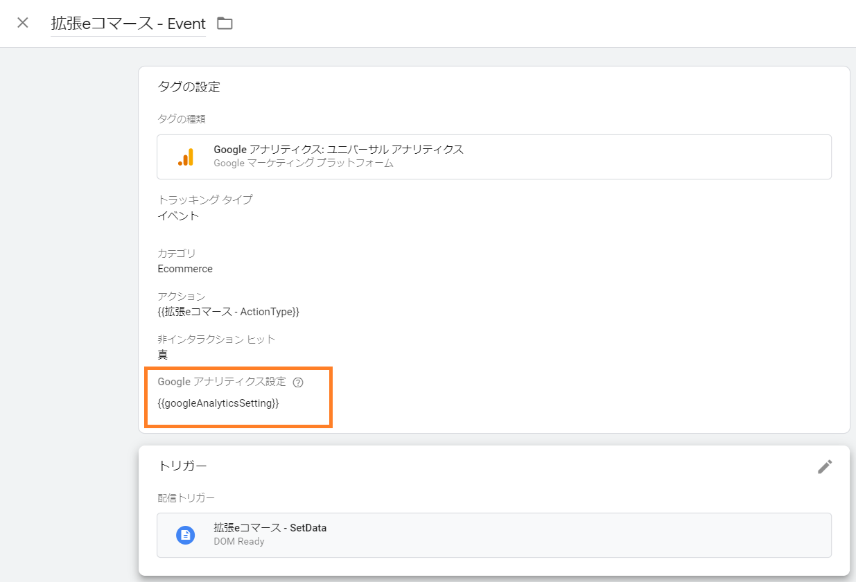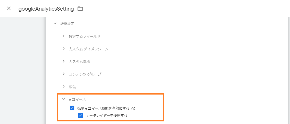かつ、その設定変数「Googleアナリティクス設定」で「拡張eコマースを有効にする」にしているか?