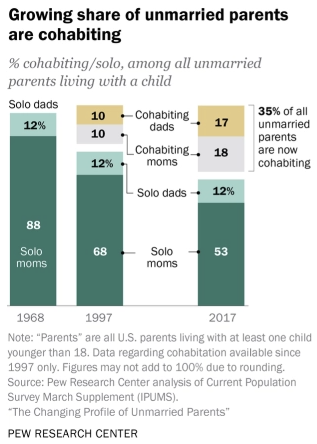 例を挙げると、近年、結婚をしていない親が増加傾向にあります。1968年には7%だったのに対し、2017年には25%と、実に親の1/4が未婚です。