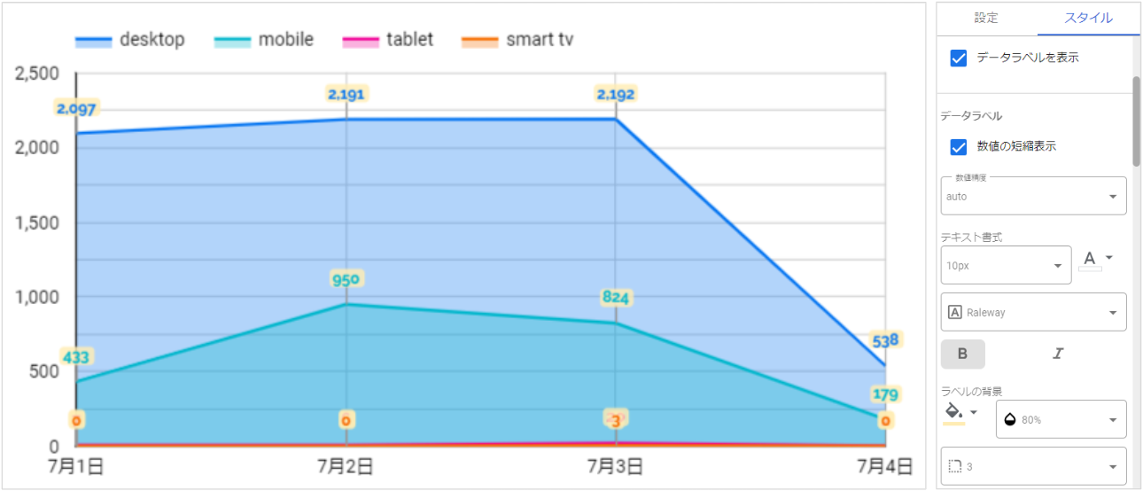 「スタイル」からグラフにタイトルを直接追加可能になりました。タイトルのフォント、色、サイズ、スタイル、位置をカスタマイズ可能です。