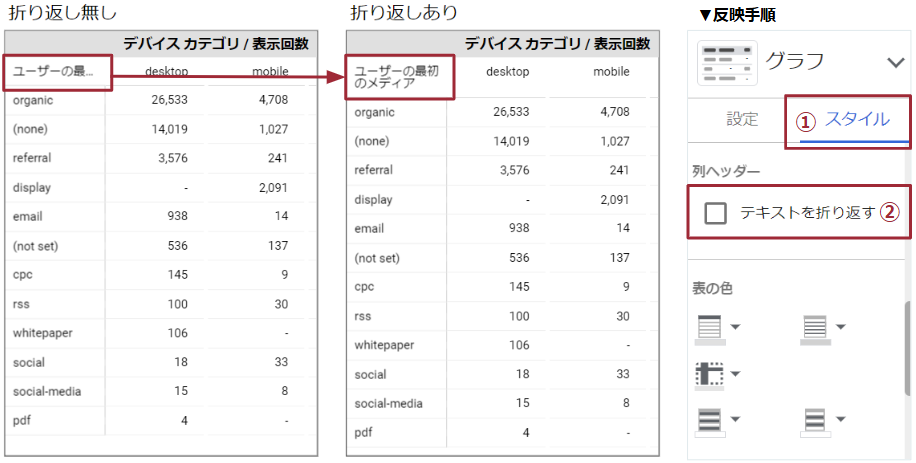 ポイント:列のディメンション名が長い場合でも、表内にコンパクトにテキストを表示可能となり、視認性が高まりました。