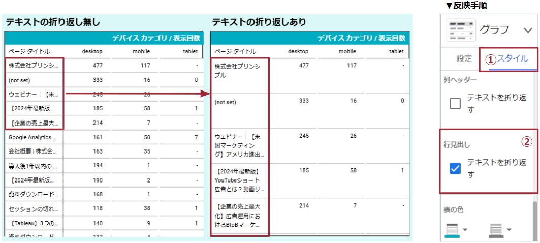 ポイント:行のディメンション名が長い場合でも、表内にコンパクトにテキストを表示可能となり、視認性が高まりました。
