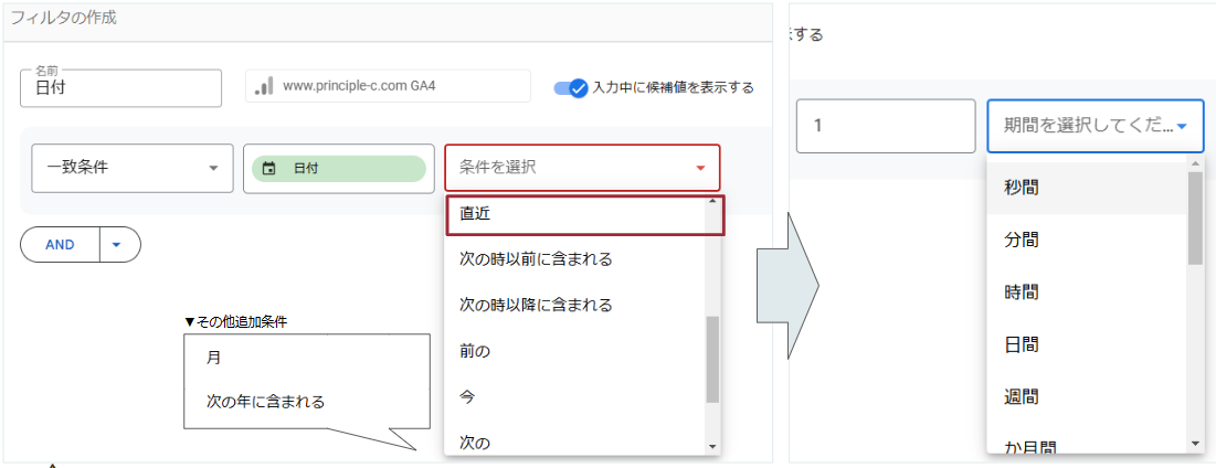 日付関連のフィルタ作成時、選択可能なフィルタ条件に下記8つが追加されました。