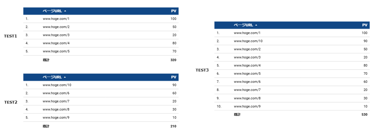 上記のように設定すると、以下の出力結果が得られ、TEST3と同じ状態が実現できます。