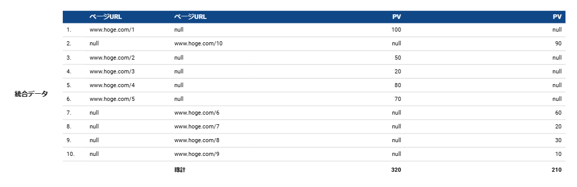 複数のデータソースの全データを1ディメンション、1指標にまとめたい