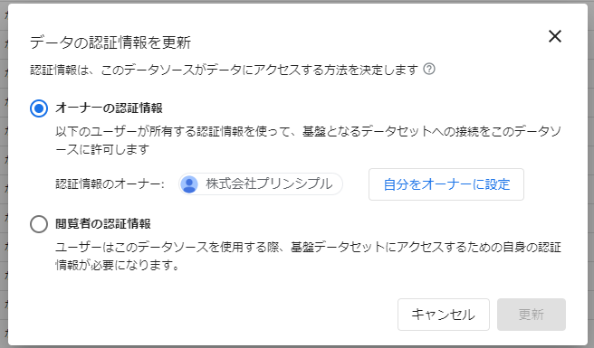 オーナーの認証情報 レポート作成者の認証情報を埋め込む 社外共有・権限を気にせず見せたい場合に便利