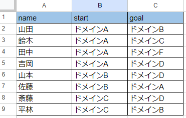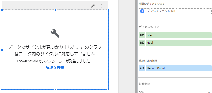 どこにサイクルがあるかというと、データの2,7行目です。山田さんと佐藤さんは遷移前と後のドメインが逆順になっています。このような場合に、LookerStudio側がデータにサイクルがあるとみなし、エラーとなります。