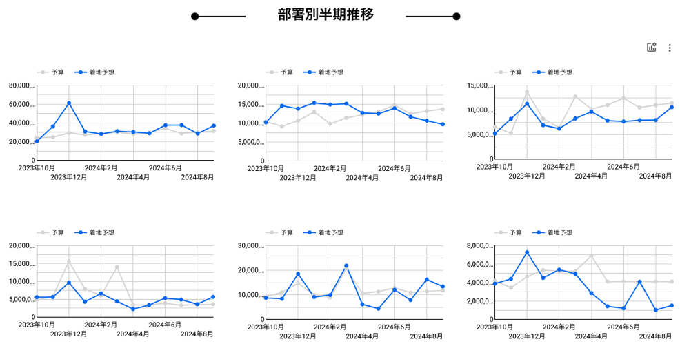 マーケティング、営業、製造など、特定の分野に特化したダッシュボードを提供し、リアルタイムでのモニタリングや分析が可能になることで、チームのパフォーマンスを改善できます。複数のKPIをトラッキングし、問題点があればすぐに対策を講じられるようなダッシュボードが理想的です。