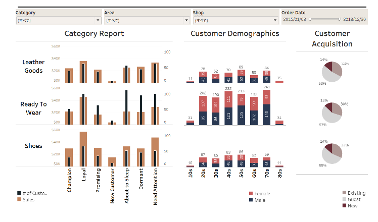 ビジネス課題を可視化し解決するためのダッシュボードは、以下のようなものが考えられます。