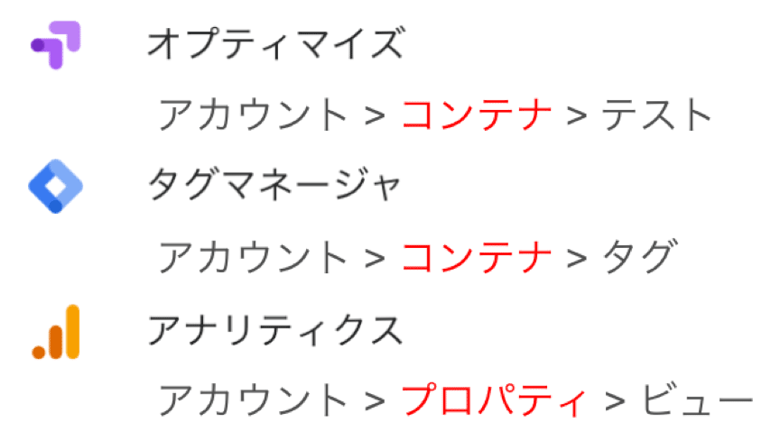■Google Optimize / Google Tag Manager / Googleアナリティクスのアカウント構造