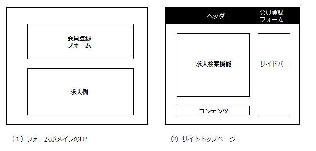 (1)の場合、ユーザーは「会員登録すれば魅力的な求人情報が得られる」と認識し、会員登録に至りやすいかもしれません。(2)の場合、サイト内を回遊して求人情報を探す動きが生まれるかもしれませんが、サイト上での回遊が多いだけで離脱してしまう可能性もあります。