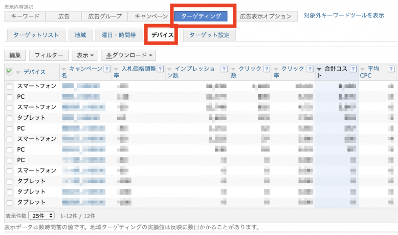 また、この記事で解説した注意点である「自動入札をしている場合はデバイス別設定ができない場合がある」ことも頭に入れておいてください。