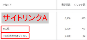 では、個別のサイトリンク結果を見たい時は、どうすればいいのでしょうか。これは、「この広告表示オプションとその他」からデータを確認することができます。