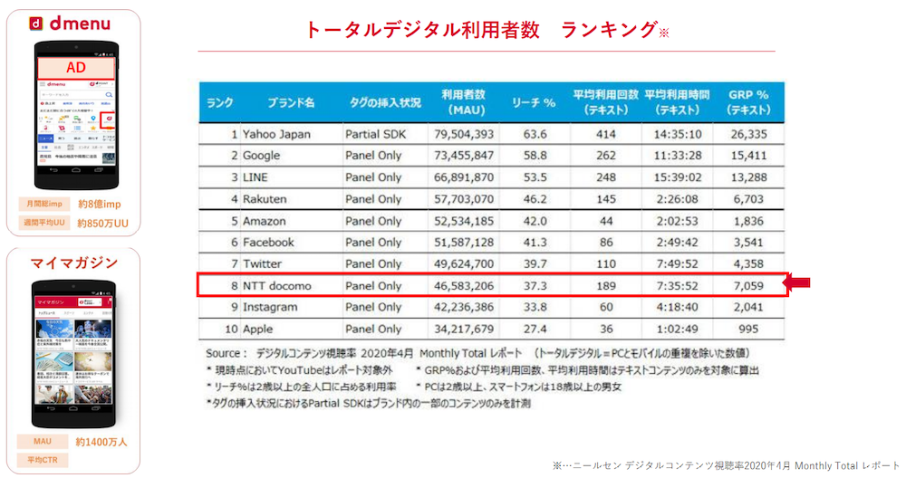 ドコモメディアは他メディア比較しても遜色ない利用者数です。