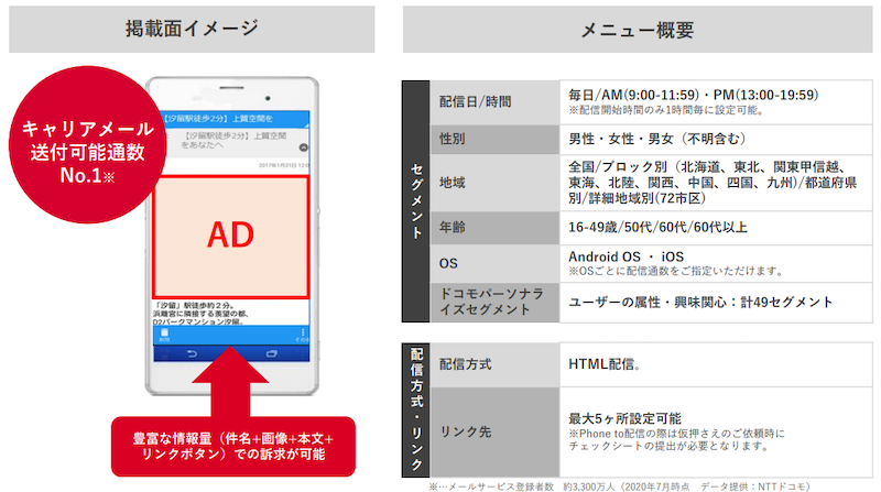 ドコモ契約者にキャリアメールでの広告配信が可能