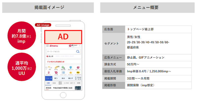 スマートフォン版ドコモポータルサイト「dメニュー」 のTOPページ&ファーストビューへ広告掲載が可能