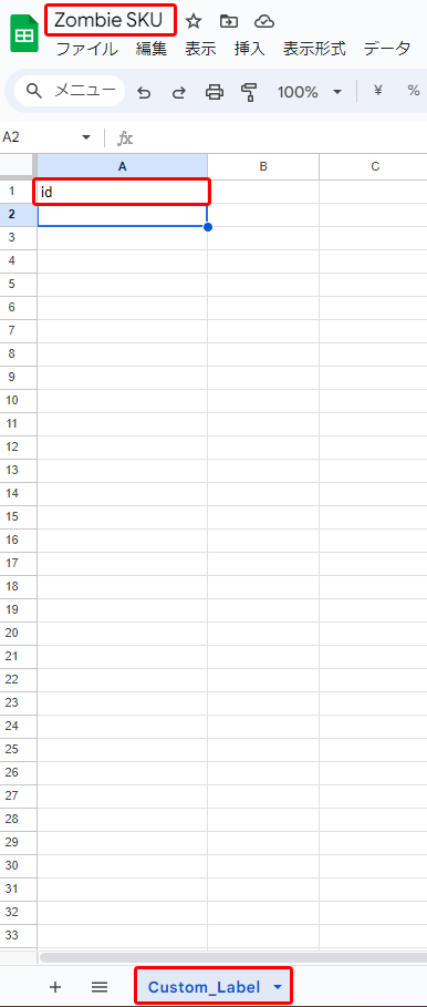 ※スプレッドシート名はなんでも構いませんが、ここでは「Zombie SKU」としています。
