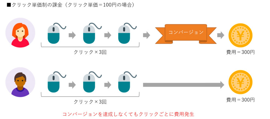 クリック単価制→ 1回のクリックに対して課金