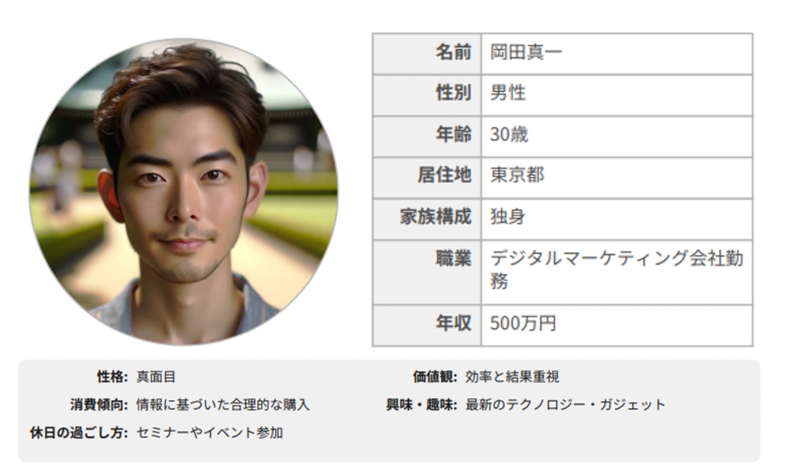 ▼プリンシプルのデジタルマーケティングセミナー集客のための、基本ペルソナ例