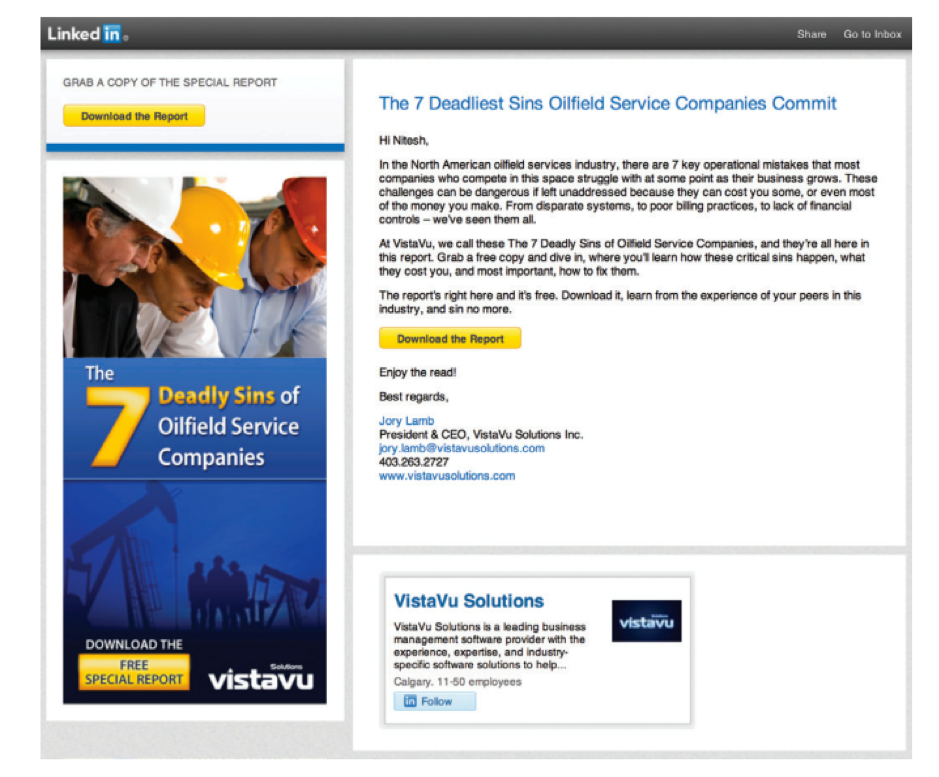 VistaVu Solutionsは、油田サービス業界にアプローチすべく上記のような広告をLinkedInで打ち出した結果、