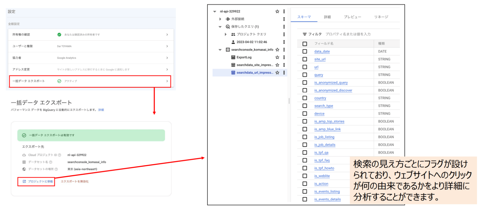 GSCの検索パフォーマンスのデータを、GSCに一括エキスポートできるようになりました。それによって、ウェブサイトへのアクセスの由来がより明確に分かるようになりました。