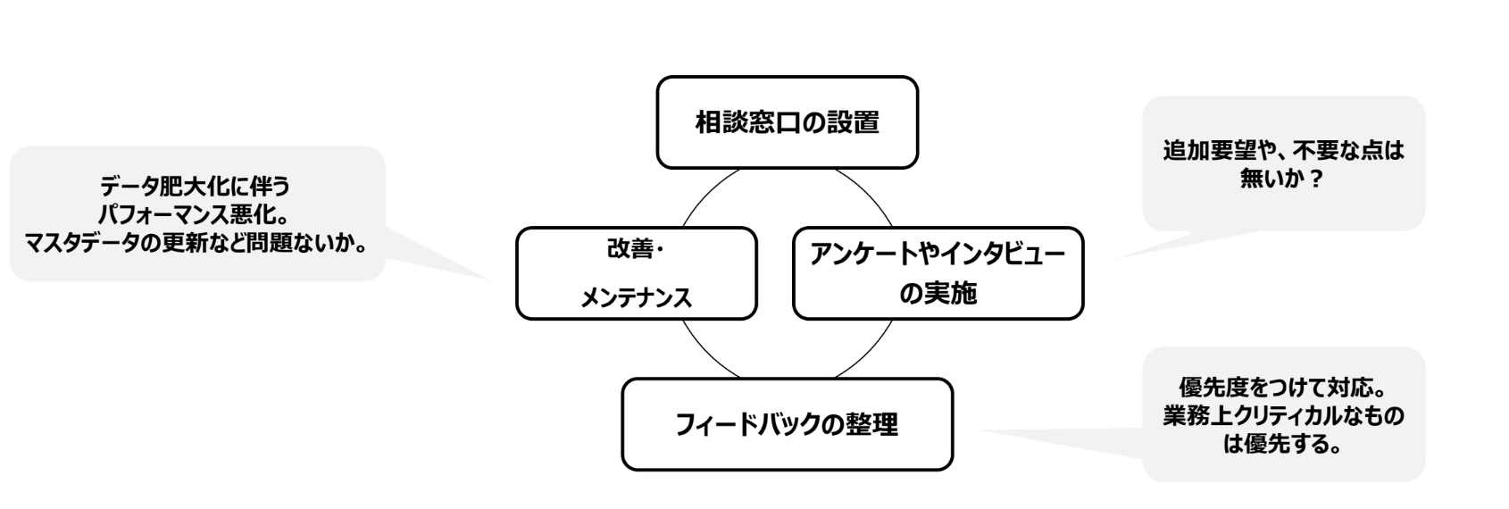 ダッシュボードを組織内に浸透させていくためには、ユーザーからのフィードバックや要望を定期的に吸い上げ、継続的な改善を行わなければなりません。