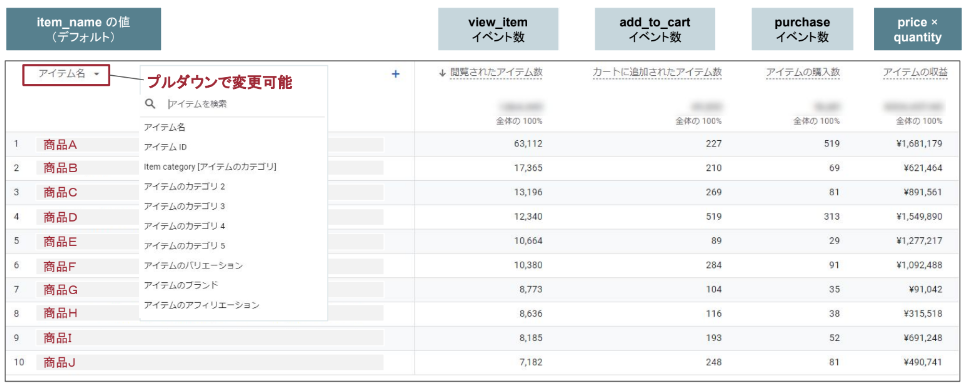 - eコマースイベントを精緻に取得しておくことで、商品ベースでの分析が可能になる