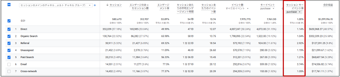 自然検索経由の購入率が低い一方で、リファラル経由やメール経由の購入率が高いことが分かります。