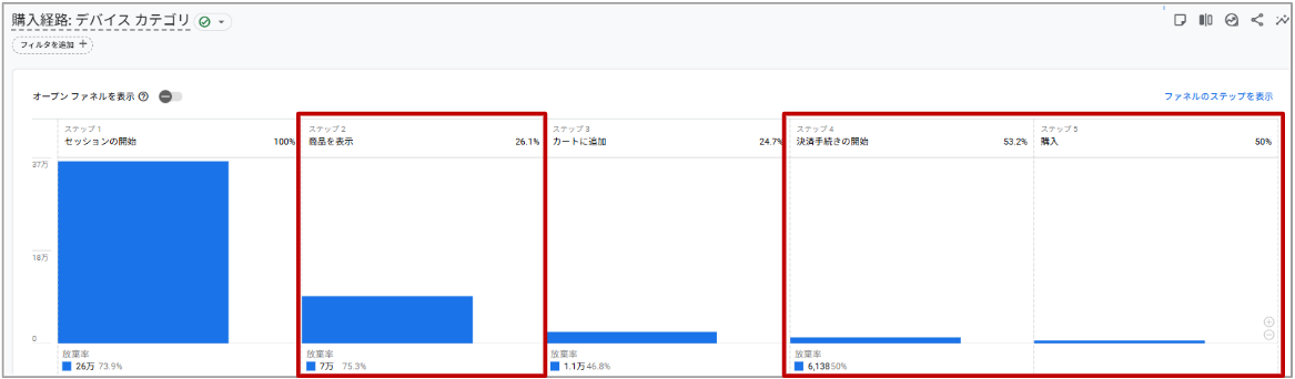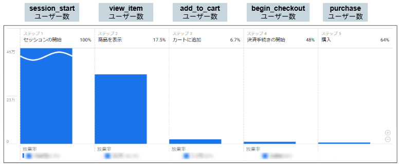 - 可視化される情報:セッション開始から購入までの離脱状況