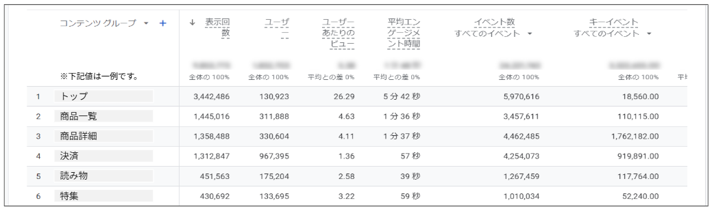 以下は、コンテンツグループを活用した分析の例です。