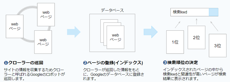 クローラーがサイトを巡回し、インデックスに登録して、それを元に検索順位を決めるという一連の流れがあります。どんなに優れた商品やページ内容であっても、検索エンジンにページを正しく認識してもらわないと検索ユーザーに届きません。クローラビリティが悪いとページの情報が検索エンジンに伝わらず、ページがインデックスされなかったり、ページの更新が反映されにくくなってしまいます。